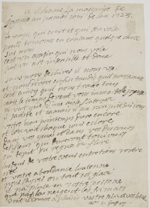Françoise d’Issembourg d’Happoncourt, dame de GRAFFIGNY (1695-1758) femme de lettres, amie des Philosophes, auteur des Lettres péruviennes. Poème autographe, à Madame la marquise de Joyeuse au premier jour de l’an 1725, [1er janvier...