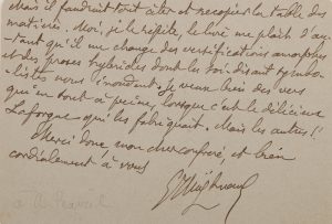 Joris-Karl HUYSMANS (1848-1907). L.A.S., Paris 19 janvier 1904, [au poète Armand Praviel] ; 2 pages oblong in-12.{CR} Il vient de lire sa Tragédie du soir : « J’y ai eu la surprise de trouver, par les temps qui courent, des vers qui sont...