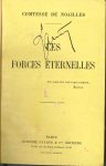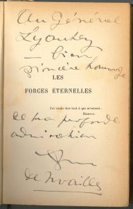 Anna de NOAILLES. Les Forces éternelles (Paris, Arthème Fayard, 1920) ; in-12, reliure (lég. frottée) demi-basane brune avec en queue le chiffre doré du maréchal Lyautey (HL avec les bâtons de maréchal croisés), couverture conservée.{CR} ...