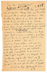 amitiés, même quand elles ne sont pas particulières. Oui, les collines trop fleuries de ma Sicile ont fait sourciller les pics sourcilleux de vos Sierras et ceux-ci, de leur côté, me font un peu sourire. Je vous admire et vous admirerai toujours autant, mais les transformations que vous faites subir si souvent au manteau de l’Ordre, me découragent. Quant au mien, au contraire, je ne tiens plus qu’à lui et j’y mourrai, fût-ce à la manière de Nessus. Tant pis ! Ce qu’il y a d’aussi certain, c’est que je continuerai également à vous aimer. Je vous connais trop pour qu’il en soit autrement, et les petites incompatibilités de nos humeurs, étant d’égard compatibles, n’y changeront rien. J’ai déjà vu, naguère, votre “adieu” avec La Reine morte. L’Oracle vous apporte le mien. Qui sait ? Cela veut peut-être dire : à bientôt »...{CR}