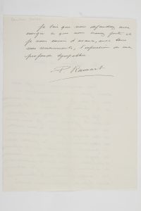 Pauline Ramart (1880-1953) chimiste ; elle fut la deuxième femme après Marie Curie à être nommée professeur de chimie organique à la Sorbonne. L.A.S., [1930 ?], à un « collègue et ami » ; 1 page et demie in-4.{CR} Au sujet de sa...