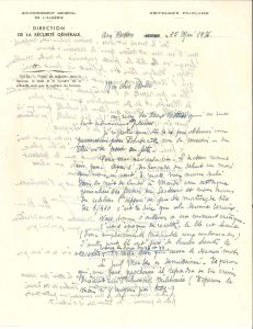 Guerre d’ALGéRIE. L.A.S. « H… H…. », Ain Bessem 25 mai 1956, à son ami André ; 2 pages in-4, en-tête Gouvernement général de l’Algérie, Direction de la Sécurité générale.{CR} « Le secteur remue un peu. Après l’embuscade...