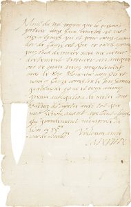 « Jespere que le presant porteur vous fara remetre cet mot asez a temps qui et pour vous guarder de fayre cet que je vous aycrivis par ma derniere mes me venir trouver an Avignon ou je man veys meyntenent avec le Roy Monsieur mon fils et vous y fayre conestre le bon servise quatans de vous et vous auray grende aubligation de metre tout soueng dy aystre aussi tot que moy senon avant aystant chause qui grandemant m’importe »...{CR}
