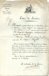 pages.{CR} Jean-François-Aimé Dejean, général de brigade commandant le génie à l’Armée du Nord (copie conforme de « Renseignemens » sur Cazals, lieutenant dans cette arme, Bois-le-Duc 1794). Alexandre Berthier, ministre de la Guerre (lettre de service pour l’emploi de Cazals comme chef de brigade du génie au camp de Compiègne commandé par le général en chef Ney, 1803). John Acton, capitaine général de l’armée et de la marine royale, conseiller d’État du roi de Naples (laissez-passer avec sa griffe pour Cazals, chef de brigade du génie, allant à Rome, 1802). Auguste Belliard, chef d’état-major général (autorisation du Roi d’Espagne au général Cazals, « blessé grièvement à la jambe sous les murs de Valence », de se rendre à Barège, Madrid 1808).{CR} Mémoires de construction avec renvois à des planches, ayant appartenu à celui qui fut directeur des fortifications à Perpignan (1801), et des travaux de fortification à Modlin (1806) : De la charpenterie ; Des pavillons portant leurs ceintres ; Pavillon à simple lattis.{CR}