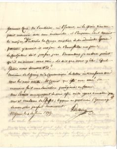 à la 1ère lettre sans sérieux manque de texte).{CR} Intéressante correspondance au jurisconsulte et diplomate alsacien Christian-Frédéric Pfeffel (1726-1807). Erfurt 26 octobre 1782. Il lui écrit sur recommandation du baron de Groschlag, avec d’autant plus de plaisir qu’il l’admire depuis longtemps, « que votre Histoire de l’Allemagne a été pour moi un guide excellent ; que je suis fier d’être allemand quand je vois ma nation illustrée par des hommes comme vous dans les pays étrangers ». Il lui demande le grand service de trouver des éclaircissements à propos de la famille de Madersbach, alliée à la famille française Jaset « naturalisée en Allemagne par lettre patente de l’Empereur Léopold », mais à laquelle on refuse l’entrée dans les chapitres faute de preuves des origines nobles des Jaset... Herrnsheim 4 juin 1799. Sur la mort de leur cher ami M. de Groschlag, et la campagne d’Allemagne : « Le Directoire par un excès de clémence a bien voulu consentir que ses armées victorieuses abandonnent Herrnsheim, puisqu’elles n’avoient point assés de munitions et d’hommes pour soutenir toutes ses forteresses de la ligne du Rhin. Je ne vous invite pas encore à retourner, malgré les succès constants de nos armées, Herrnsheim n’offrira une retraite qu’après la prise de Maÿence »... Il s’inquiète des sommes insuffisantes dont dispose le Ministère de la Guerre à l’approche du siège de Mayence : « Quelle administration qui après 5 années de succès militaires ne trouve plus les ressources pour assurer la plus importante de toutes leurs conquètes. On va faire sauter 150 mines, et de plein pied vous passerez des rues en plein champ. Marescot destine 400 quintaux de poudre pour ce salutaire ouvrage »... Paris 13 septembre 1812 : il a passé six semaines à Herrnsheim « à batir et à jardiner pour me faire de cette antique habitation ou une maison de retraite pour un Sénateur ou une maison de peine pour un exilé » ; commande d’une nappe avec 36 serviettes : « « Notre hiver ne sera pas assés gai pour en faire un grand usage. Je doute que l’empereur nous revienne quel que soit le désir que la France ait de le voir au milieu d’elle »… 14 février 1813 : « Les événemens m’avoient imposé des vues d’économie dont encore il ne faut par se départir »… Nouvelles du baron de Just et du mariage de Cetto…{CR}