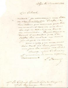 Eugène Daumas (1803-1871) général et homme politique. L.A.S., Alger 1er juillet 1842, au colonel Eynard, aide de camp du Gouverneur général ; 1 page in-4 (manque un coin sans perte de texte).{CR} « Victoire ! Je vous envoye une lettre de...