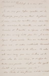 HENRI V, duc de Bordeaux puis comte de CHAMBORD (1820-1883) prétendant légitime au trône de France. L.A.S. « Henri », Frohsdorf 21 mai 1851, au baron Hyde de Neuville ; 1 page et demie in-8.{CR} Il lui envoie par l’intermédiaire de M. de...
