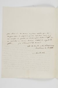 1815 l’évasion de son mari condamné à mort. L.A.S. « Beauharnois de La Vallette », 5 décembre 1816 ; 1 page et demie in-4.{CR} Préparation de sa défense, dans la crainte d’être jugée pour avoir aidé son mari à s’évader de prison. « Oserai-je formuler un vœu, je ne connois point les Loix ; j’ignore donc si je serai soumise à un jugement ; si cela est je compte m’en remettre parfaitement à l’humanité des Juges et à la bonté du Roy. Je répondrai aux questions qu’on se croira en droit de me faire je ne veux point d’avocats leur talent est au-dessus d’une chose si simple, je plaiderai moi-même si cela est nécessaire. Je n’ai point de faits à atténuer, point de vérité à détruire, ma conscience et mon devoir voila ce qui m’a fait agir, avec cela on pourroit gâter en voulant y travailler. A-t-on pu m’inspirer une chose qui tient à l’âme ; non, d’après cela aucune suite y eussai-je pensé ne pouvoit m’effrayer. Je voudrois qu’on me rendit la justice de croire, que je n’aurois pas voulu y impliquer personne ; […] j’oserai ajouter, que ne craignant point le jugement, je serai cependant ravie, si je suis exempte de paroître, ne désirant point du tout l’effet et ne souhaitant en aucune manière d’attirer les regards du public »…{CR}
