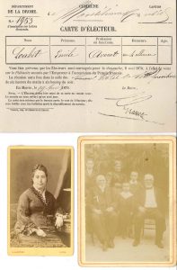 de soirée et carte postale commémorative des fêtes franco-espagnoles (1905). Remerciements du comte de Pié de Concha, 1er introducteur des ambassadeurs à la Cour d’Espagne (1906). Cartes de membre fondateur de la Société hippique de la Drôme et de l’Ardèche pour les courses de Montélimar, au nom du président Loubet (1919). Photo de famille, portrait de sa femme...{CR}