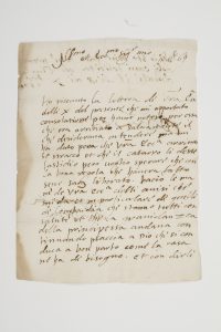 (1559-1567). L.A.S. « Margarita d’Austria », Civita Ducale 18 décembre 1569, à son mari le duc de Parme et Piacenza ; 2 pages in-fol. (petite répar.), adresse avec cachet de cire rouge aux armes ; en italien.{CR} Elle le remercie de sa lettre qui lui apporte consolation, et s’enquiert de sa santé qu’il devrait recouvrer bientôt grâce à son bon régime. Elle lui baise les mains des avis qu’il lui donne, et notamment de ceux de Lombardie. Elle évoque la grossesse de la princesse Andana en souhaitant qu’elle continue de plaire à Dieu pour qu’il la mène à un heureux accouchement dont la maison a besoin…{CR}
