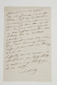 écrivains. L.A.S. « Mathilde », St Gratien 3 août, [à Alexandre Dumas fils] ; 4 pages in-8. {CR} Belle lettre. ... « vous êtes un homme qui avez lâché tant d’écluses que j’éprouve vis à vis de vous un sentiment de timidité [...] malgré la tendresse de votre lettre que j’aurais prise pour argent comptant de la part de tout autre de mes amis j’hésite et je cherche le motif qui a subitement donné à votre plume une expression si nouvelle dont je la croyais dénuée. Vous voulez être je crois un sceptique, un Monsieur qui a tout connu, tout éprouvé, que tout a lassé et désillusionné – de là votre morale si absolue, si âpre, si impitoyable. On se voile la face en vous voyant passer et l’on réserve son cœur. Mais voilà qu’une femme bien innocente d’esprit vous fait une phrase bien simple et dont elle ne soupçonnait pas la portée, vous la prenez au sérieux des sentiments. Votre glace se fond, vous retrouvez votre cœur oublié et vous tracez de votre belle écriture les mots les plus aimables et les plus flatteurs – elle d’y croire, d’y réfléchir, et de se dire – c’est un poëte – il faut se méfier [...] si je suis entrée dans son cœur je l’ai associé au mien – je suis vis à vis de lui sans gêne et sans reproche et ma confiance en lui est la base de ma véritable amitié »...{CR}