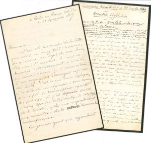 juin 1857, [à Pingard, chef du secrétariat de l’Institut], au sujet d’une lettre reçue comme directeur de l’Académie : « Veuillez faire rédiger la réponse habituelle que je signerai à la séance générale [...] je ne sais rien de l’ordre du jour de mercredi »... La Roche en Breny 28 septembre 1857, [à Portalis], à propos de son dernier discours à l’Institut : « Vous trouverez sous ce pli la transcription exacte des passages où j’ai prédit, à deux reprises différentes, la catastrophe de la liberté, grâce aux exagérations et aux convoitises de la démocratie contemporaine. Les jeunes gens qui regimbent contre la sévère vérité de mes paroles, et qui vous ont dit que nous n’avons que des tapageurs impuissans, comptaient probablement eux-mêmes parmi les tapageurs qui sous le règne de Louis-Philippe applaudissaient aux cours de MM. Michelet et Quinet, aux banquets de MM. Ledru-Rollin et Lamartine – Les hommes de ma génération suivaient, avec respect et enthousiasme, les cours de MM. Guizot, Cousin et Villemain. Leur enthousiasme a valu à la France vingt ans de liberté et de dignité politique, comme elle n’en a jamais vus dans son histoire, et que les tapageurs de 1848 ont remplacés par ce que nous voyons »... Il a joint deux copies d’extraits du Moniteur, titrés de la main de Montalembert : discours sur la question suisse à la Chambre des Pairs (journal du 15 janvier 1848), discours sur l’expédition de Rome à l’Assemblée Législative (20 octobre 1849).{CR}