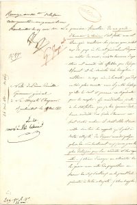 d’honneur à Turin s’est faite avec cet élan qui caracterise les jeunes gens, surtout ceux des pays où l’on est généralement disposé au métier des armes ; mais ces heureuses dispositions ont ensuite été affoiblies par l’assujetissement et la sevérité de la discipline militaire »… Des places sont restées vacantes. Le Prince propose que Sa Majesté accorde quelques places de sous-lieutenant aux jeunes gens les plus distingués, et recommande « qu’aucun jeune homme, réunissant d’ailleurs toutes les qualités voulues pour etre admis dans la garde d’honneur, ne put être placée dans la ligne et dans le grade d’officier sans avoir passé par ce corps, à moins qu’il ne sortit d’une école imperiale militaire »…{CR} Napoléon fait renvoyer cette proposition au Ministre de la Guerre, avec l’indication : « Cette precaution me parait bonne »…{CR} Vente Piasa, 21 novembre 2007 (n° 661).{CR}