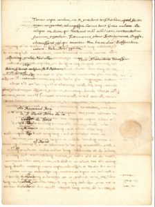 Peter Crüger (1580-1639, mathématicien et astronome allemand), Dantzig 9 mai 1634, en latin, recommandant le jeune Israël Jasski, qui voyage en Belgique et en France. Dufaure, Castelnaudary 28 novembre 1625, le suppliant de prendre « quelque soing » de son fils.