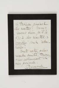 « Nous avons été bien heureux de vous savoir si admiré, si applaudi, et aussi de voir combien les journaux rendaient justice à votre magnifique mise en scène et à votre goût. Nous sommes fous, à distance, du merveilleux décor automnal de Ronsin […] nous avons failli partir pour Paris pour vous revoir au milieu de vos feuilles d’or ! » Mais il y a eu des tracas de santé… Sachant que Jacques Richepin annonce une pièce sur Polichinelle, Mme Rostand rédige une déclaration que Coquelin pourrait faire aux journalistes, annonçant que Rostand prépare une pièce pour lui sur ce personnage ; elle recommande de ne rien dire du sujet de la pièce, et précise que Rostand veut mettre l’accent sur le « côté philosophique » de Polichinelle, alors que Jacques Richepin n’y verra « que le côté poétique et funambulesque »….