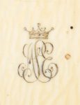 Dans la valise, rangés dans des compartiments, avec couvercles en métal argenté à la couronne de vicomte gravée : boîte à poudre, grand flacon d’eau de toilette (cassure au verre), 4 flacons à parfum. On trouve également dans la valise : une boîte à boutons en cuir ; 3 brosses à habit (une au chiffre couronné), 3 brosses à cheveux (une au chiffre couronné), un cintre portatif, un couvercle en métal argenté à la couronne, une lime, un chausse-pied, un tire-bouton. Quelques accessoires ont pu avoir été ajoutés..