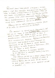 Si la conscience ne signifie rien de transcendant, rien non plus ne s’oppose à ce que je m’appuie sur elle avant l’homme. Latente dans l’espace. C.à.d. capable de choix et donc de perfectionnement. L’homme plus tard, une fois formé, prend conscience de sa conscience. Participe à la conscience universelle. Mais que faire de neuf ? Il conçoit et expérimente. Il crée au travers de courtes bavures »... Les deux dernières pages exposent cinq hypothèses à partir d’un ensemble de quatre caractères de l’alphabet, auquel il fait subir « un certain nombre d’opérations géométriques et effectue à leur sujet un certain nombre de demandes de conscience », ainsi que des « plans de symétrie » »... .