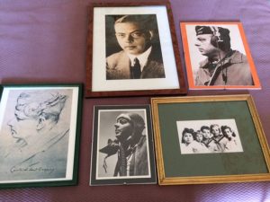 encadrées (environ 30 x 25 cm chaque).. Saint-Exupéry au milieu de ses frère et sœurs (vers 1907) ; Saint-Exupéry en tenue de pilote (2) ; Saint-Exupéry dessiné par sa femme Consuelo ; portrait (1940)...* * * *..