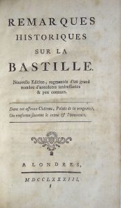 [BASTILLE]. Remarques Historiques sur la Bastille. Nouvelle Edition, augmentée d’un grand nombre d’anecdotes intéressantes & peu connues. Londres, s. n., 1783