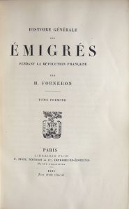 FORNERON (Henri). Histoire Générale des Émigrés pendant la Révolution française. (T. 1 et 2). Les Émigrés et la société française sous Napoléon Ier (T. 3). Paris, Plon Nourrit, 1884-1890.