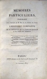 • Mémoires Particuliers formant avec l’ouvrage de M. Hue et le journal de Cléry