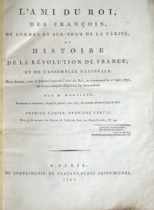 MONTJOYE (Galart de). L’Ami du Roi, des François, de l’Ordre et sur-tout de la Vérité, ou Histoire de la Révolution de France et de l’Assemblée Nationale. Pour former, avec le journal intitulé l’Ami du Roi, et commencé le 1er juin...