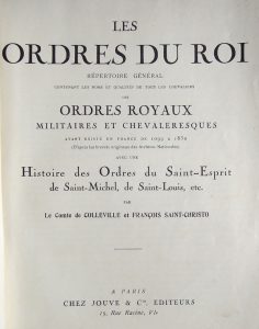 COLLEVILLE (Comte de) et SAINT-CHRISTO(François). Les Ordres du Roi. Répertoire général contenant les noms et qualités de tous les chevaliers des Ordres royaux militaires et chevaleresques ayant existé en France de 1099 à 1830… avec une...