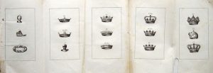 In-12, broché. Couverture imprimée (défraîchie). viii-239 pp. et 2 pl. dépliantes (la page de titre annonce par erreur 5 pl.) de blsons et couronnes (numérotés de 1 à 73).