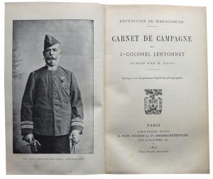 [LENTONNET]. GALLI (H.). Carnet de Campagne du Lt-Colonel Lentonnet. Expédition de Madagascar. Orné de gravures d’après des photographies. Paris, Plon, Nourrit et Cie, 1897.
