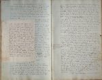 Toile déchirée en plusieurs endroits, coins usés, plats presque détachés.Manuscrit à l’encre brune, sur papier bleuté avec les lignes tracées au crayon, composé d’un titre et 132 pages et de 3 ff. manuscrits contrecollés en marge.