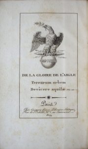 CHAZOT (Claude-François). De la Gloire de l’Aigle. Emblême, symbole, enseigne militaire et décoration, chez les peuples anciens et modernes. Recherches historiques, critiques, héraldiques et littéraires. Paris, Clament, 1809.