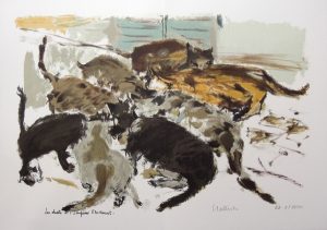 Les lithographies sont justifiées E.A. (épreuve d’artiste) et signées dans la marge. Photographie de Battista et de Brassens (tous deux nés à Sète et amis) contrecollée sur la première contregarde.