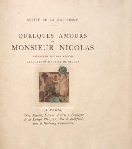 RESTIF DE LA BRETONNE. Quelques Amours de Monsieur Nicolas. Gravures de Maurice de Becque. Paris, Baudel, 1924.