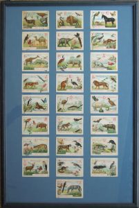 25 chromos à sujet animalier illustrant les lettres de l’alphabet, réunies dans un grand cadre.