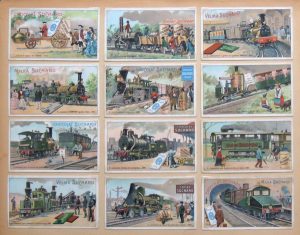 l’histoire de la locomotion depuis la voiture à vapeur de Cugnot (1770) à la « locomotive électrique pour chemins de fer souterrains » (1900). Très bon état. Présentées sous verre.