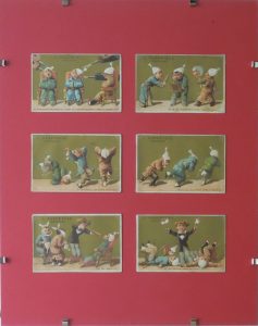 Série complète de 6 chromos sur fond doré. Publicité L. Parenteau, teinturier. Très bon état.