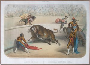 Lithographie originale, 28,2 x 39,5 cm, en couleurs, n° 3 de la série (en 6 estampes) Corrida de toros.