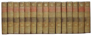 13 volumes in-8, reliure de l’époque basane flammée, dos lisse orné, pièces de titre et de tomaison rouge et brun (passées), roulette ornée en encadrement sur les plats. Qq. épidermures, petites galeries et trous de vers sur le second plat du t. 13.