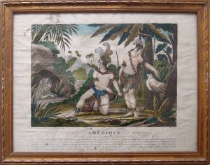 - Amérique : Famille mexicaine surprise par un Lion. Cette nouvelle partie du monde… a acquise une triste célébrité par les horreurs commises par les Espagnols lors de la découverte de ce continent. Le Mexqiue et le Pérou vaste empires de ce lointain pays étaient à la vérité plongés dans la plus profonde ignorence car ils adoraient le Soleil et n’avaient nullement connaissance de l’Etre Suprême …