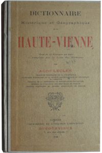 LECLER (André). Dictionnaire Historique et Géographique de la Haute-Vienne. Orné de 15 gravures au traits et complété par la Liste des Hameaux. Limoges, Ducourtieux, 1926.