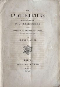 GUYOT (Jules). Sur la Viticulture dans le Département de la Charente-Inférieure. Paris, Imprimerie Impériale, 1861.