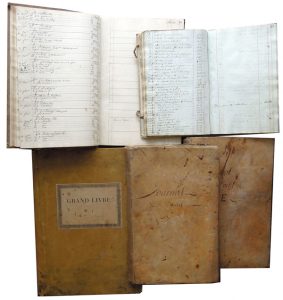 [SAINTES]. Réunion de cinq livres de compte d’un marchand de tissus de Saintes nommé Hocard. Fin XVIIIe - début XIXe siècle :