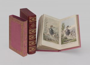 Charmant almanach orné de six jolies figures hors texte et d'une vignette de titre gravées au pointillé et coloriées. # L'ouvrage, qui s'ouvre sur une histoire des modes et se clôt par un calendrier dépliant pour l'année 1820, est « rempli de notices curieuses sur les choses et les particularités de l'époque, note Grand-Carteret. À signaler les articles Bonbons, Étrennes, Carnaval du peuple, Panorama de Jérusalem, Promenades de Longchamps, Boutades contre les grands chapeaux, Tivoli, Frascati, Mousseaux, Salon de 1819, etc. » # Étiquette gravée de Susse, marchand papetier installé à l'époque dans le Passage des Panoramas, au premier contreplat. # Exceptionnel exemplaire, cité par Grand-Carteret, enrichi des aquarelles originales de toutes les compositions hors texte et conservé dans ses ravissants cartonnage et étui d'origine, de toute fraîcheur. # Des bibliothèques du baron Jérôme Pichon (1897, I, n°430) et de Sir David Lionel Salomons (ex-libris). # Grand-Carteret, n°1893 (exemplaire cité).