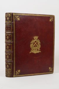 BERTHELOT (Claude-François). La Mécanique appliquée aux arts, aux manufactures, à l'agriculture et à la guerre. Tome premier. Paris, chez l'auteur, Demonville, 1781. In-4, maroquin rouge, triple filet doré, fleuron doré aux angles, armoiries...