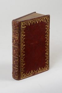 rouge, dentelle florale dorée, dos lisse orné, filet sur les coupes, tranches dorées (Reliure du XVIIIe siècle).