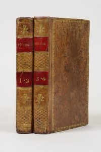 [NERCIAT (André-Robert Andréa de)]. Félicia, ou mes fredaines. Londres, s.n., 1776 [vers 1800]. 4 tomes en 2 volumes in-18, basane racinée, roulette de pampres dorée, dos lisse orné d'un fer à l'arc et au carquois et de treillis de filets...