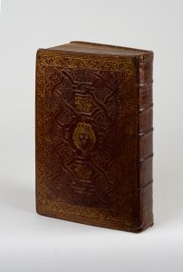 d'entrelacs de filets dorés et de motifs au pointillé, armoiries et chiffre répété au centre, dos orné de fleurs de lis, roulette sur les coupes et la bordure intérieure, tranches dorées (Reliure de l'époque).