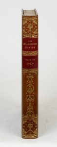 Suite complète des gravures de Boucher, Gravelot, Moreau, Monnet, Eisen, Choffard et d'autres artistes pour l'édition des Métamorphoses d'Ovide donnée à Paris en 1767-1771, en 4 volumes in-4. # Entièrement gravée sur cuivre, elle comprend un titre-frontispice, 3 pp. de dédicace, 139 planches, un cul-de-lampe et 20 pp. de table et d'explication des planches. # Bel exemplaire dont on peut attribuer la reliure à l'atelier londonien Rivière & son. # Dos passé.