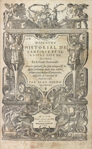 POLDO D'ALBENAS (Jean). Discours historial de l'antique et illustre cité de Nismes, en la Gaule Narbonoise, avec les portraitz des plus antiques & insignes bastimens dudit lieu, reduitz à leur vraye mesure & proportion, ensemble de l'antique &...