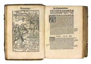 Septième édition, très rare, de cette impressionnante encyclopédie illustrée de très nombreuses « figures sur bois assez remarquables » (Brunet), relatives à l'astronomie, l'astrologie, la géométrie, l'anatomie, l'architecture, etc. # Elle est ornée notamment d'un encadrement de titre à fond colorié, de seize gravures allégoriques à pleine page en tête des chapitres et d'un planisphère dépliant en fin de volume (sur deux), légendé Oculus videntis Spera in plano. # Margarita philosophica, littéralement La Perle philosophique, « was the first modern encyclopedia to appear in print » (Smith). Publiée pour la première fois en 1496, chez Schott à Strasbourg, et réimprimée dans la même ville par Grüninger, en 1504, 1508, 1512, 1515, etc., elle couvre l'ensemble des savoirs universitaires de l'époque, résumés en douze sections correspondant aux disciplines du trivium et du quadrivium : grammaire latine, dialectique, rhétorique, arithmétique, musique, géométrie, astronomie, physique, histoire naturelle, physiologie, psychologie et éthique. # On a relié à la suite une rare édition bâloise des opuscules de l'humaniste bolonais Filippo Beroaldo (1453-1505), faite sur celle de Josse Bade (Paris, 1513). # Bel exemplaire relié au xvie siècle en peau de truie estampée, comportant quelques marginalia à la plume d'une main contemporaine. # Manquent, dans Margarita philosophica, les six derniers feuillets de l'appendice (O4 P2), dont la carte du monde repliée. Petites mouillures, cassures marginales et piqûres de ver touchant quelques feuillets. # I. Reisch : VD16, R-1039 – USTC, 675098 – Ritter, Rép. Strasbourg, n°1987 – Smith, Rara arithmetica, pp. 82-84 (éd. de 1504, 1508, 1535) – Fairfax Murray, German, n°354 (éd. de 1517). – II. Beroaldo : Adams, B-773 – VD16, B-2136 – USTC, 600405.